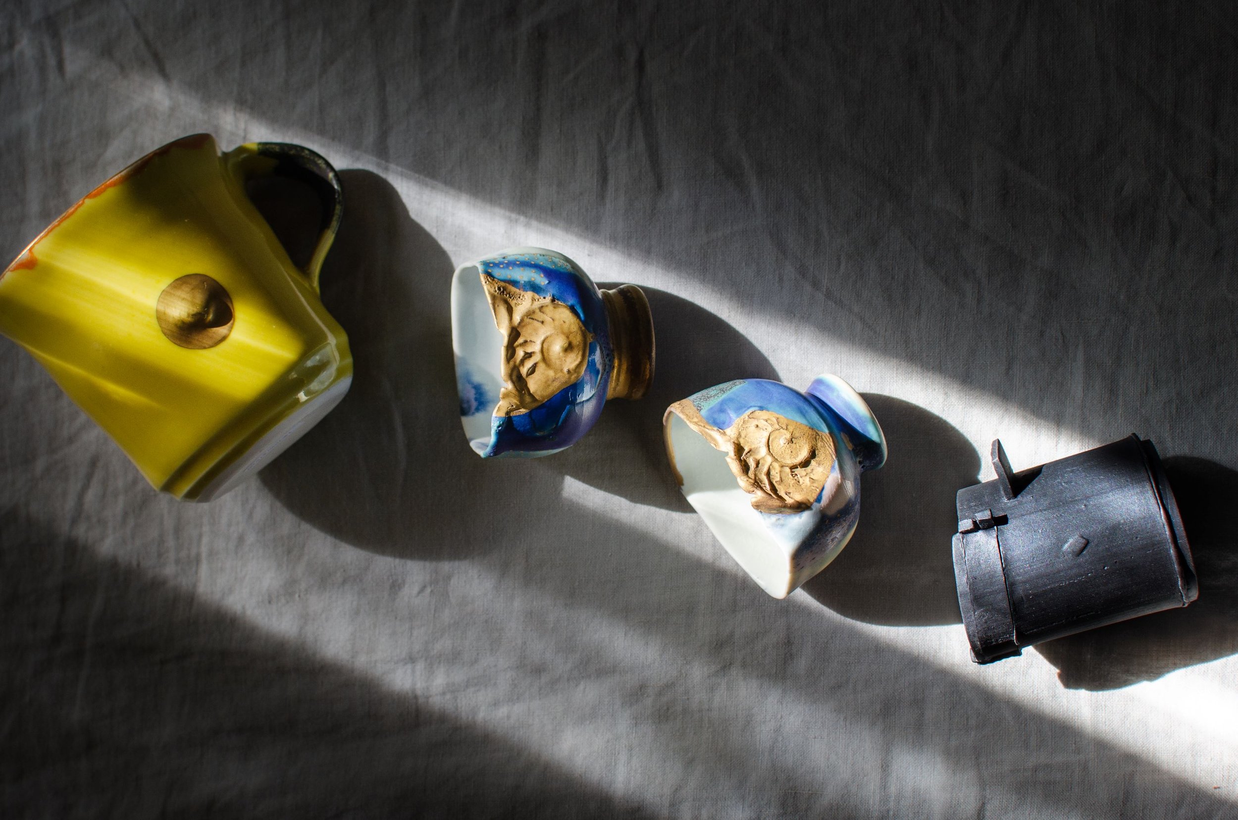 Mugs by Ludmila Evans and Babette Herschberger, photo by Kathleen Bly